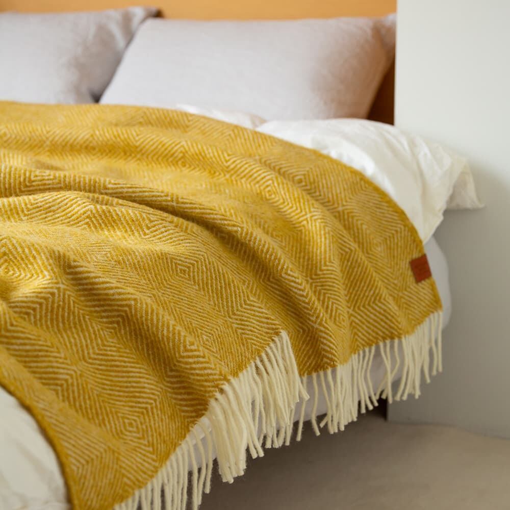リサイクルウールを使用したスロー「グースアイ」。
