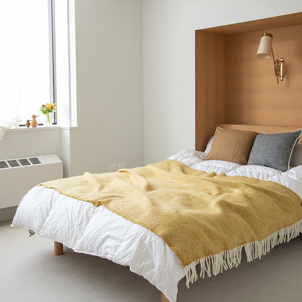 イエローは、肌寒い秋冬の暮らしにほっこりとした温かさを運び、 リサイクルウールだからこそ生み出せるニュアンスカラーが“北欧モダンスタイル”を叶えます。