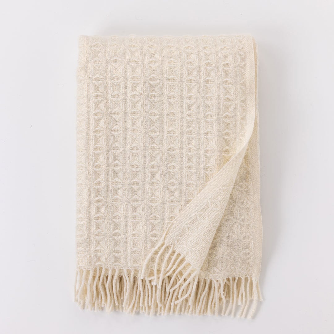 暗くなりがちな冬のお部屋を明るく彩るホワイトカラーのウールスロー。