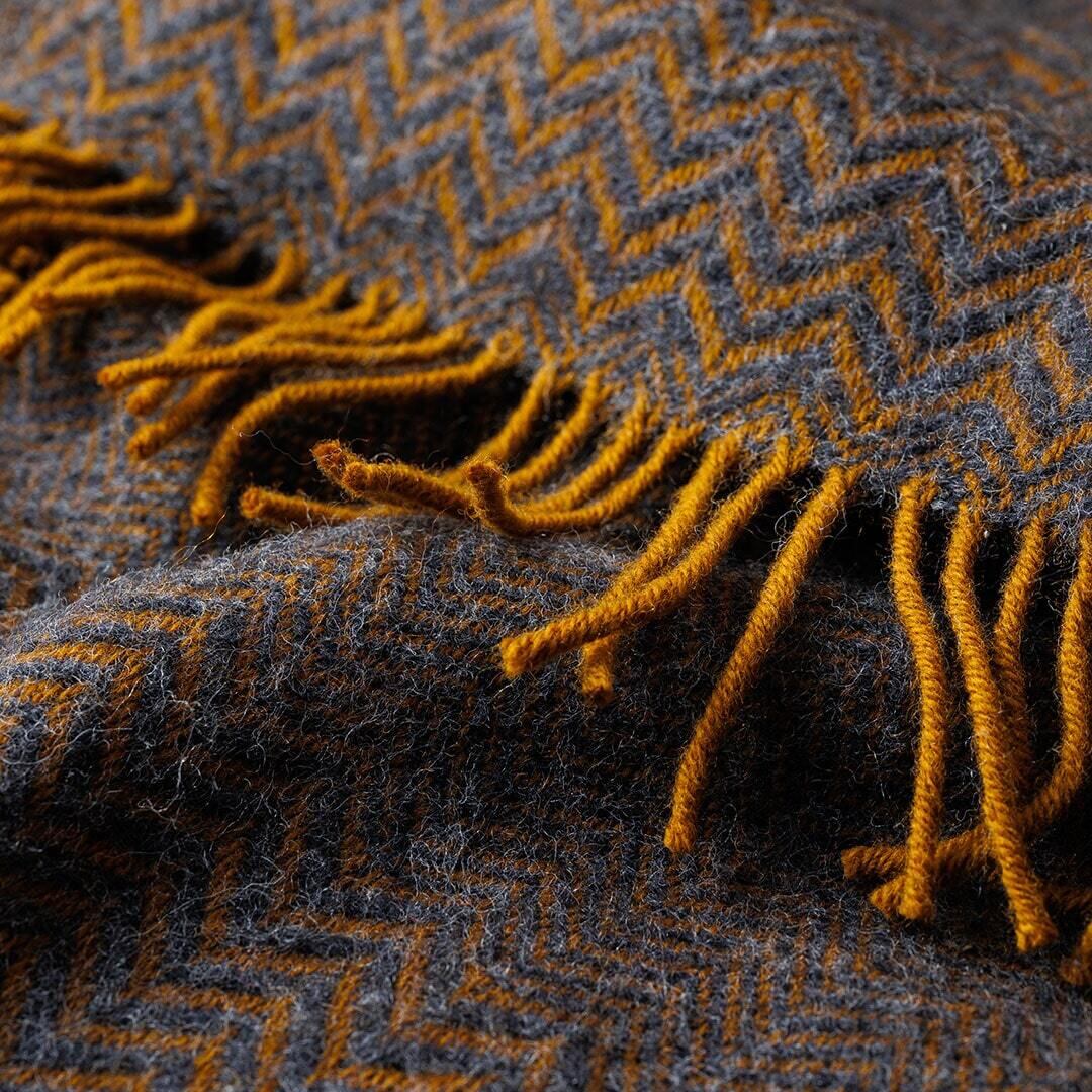 チャコールとダークキャメル、深みのある2色の糸で織りあげられたスロー「ZIGZAG」。